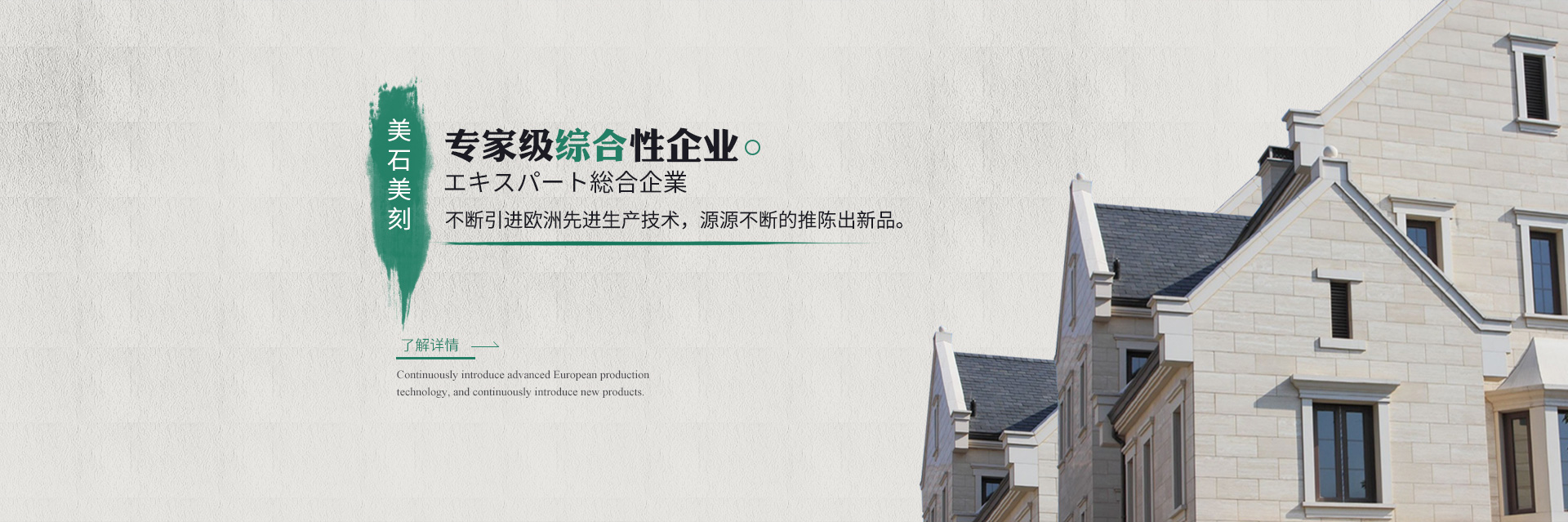 “美石美刻”以和諧大自然之美石為研發(fā)目標(biāo),以精雕細(xì)琢之手腕制造雕刻為藝術(shù)韻律,取大地之精華為制造靈感,為新世紀(jì)節(jié)能減排做貢獻(xiàn)為己任,不斷引進(jìn)歐洲先進(jìn)生產(chǎn)技術(shù),源源不斷的推陳出新,是國(guó)內(nèi)首推大型整體板的企業(yè),首推客制化定制型服務(wù)的企業(yè)。