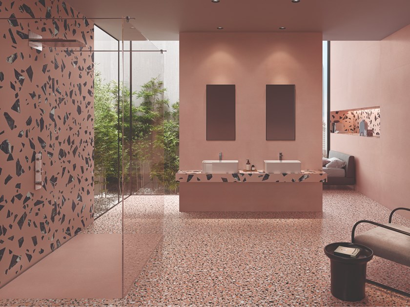 水磨石預(yù)制板材:因?yàn)楣S化流水線的操作、切割,造成效果單一,圖案定制化空間比較小。